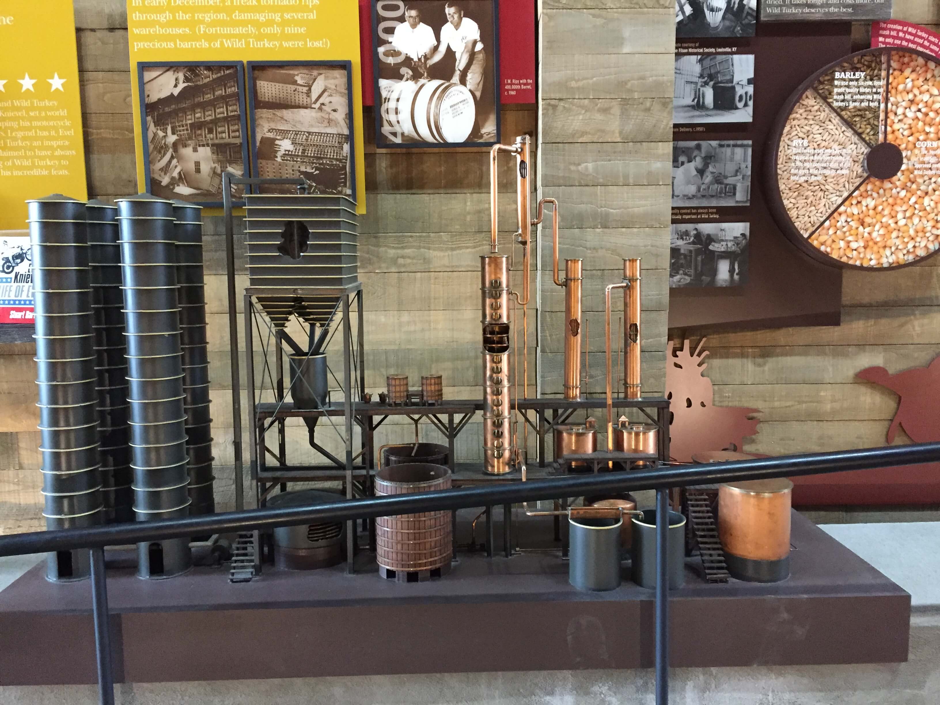 Wild Turkey Distillery was the bourbon tour that I took while in Kentucky. This company has been in operation for 75 years and is located on a cliff overlooking the Kentucky river. The owner of Wild Turkey is Jimmy Russell. He is the longest active distiller of bourbon in the country. He combines the art and science of distilling into producing the Wild Turkey Brand of Bourbon.