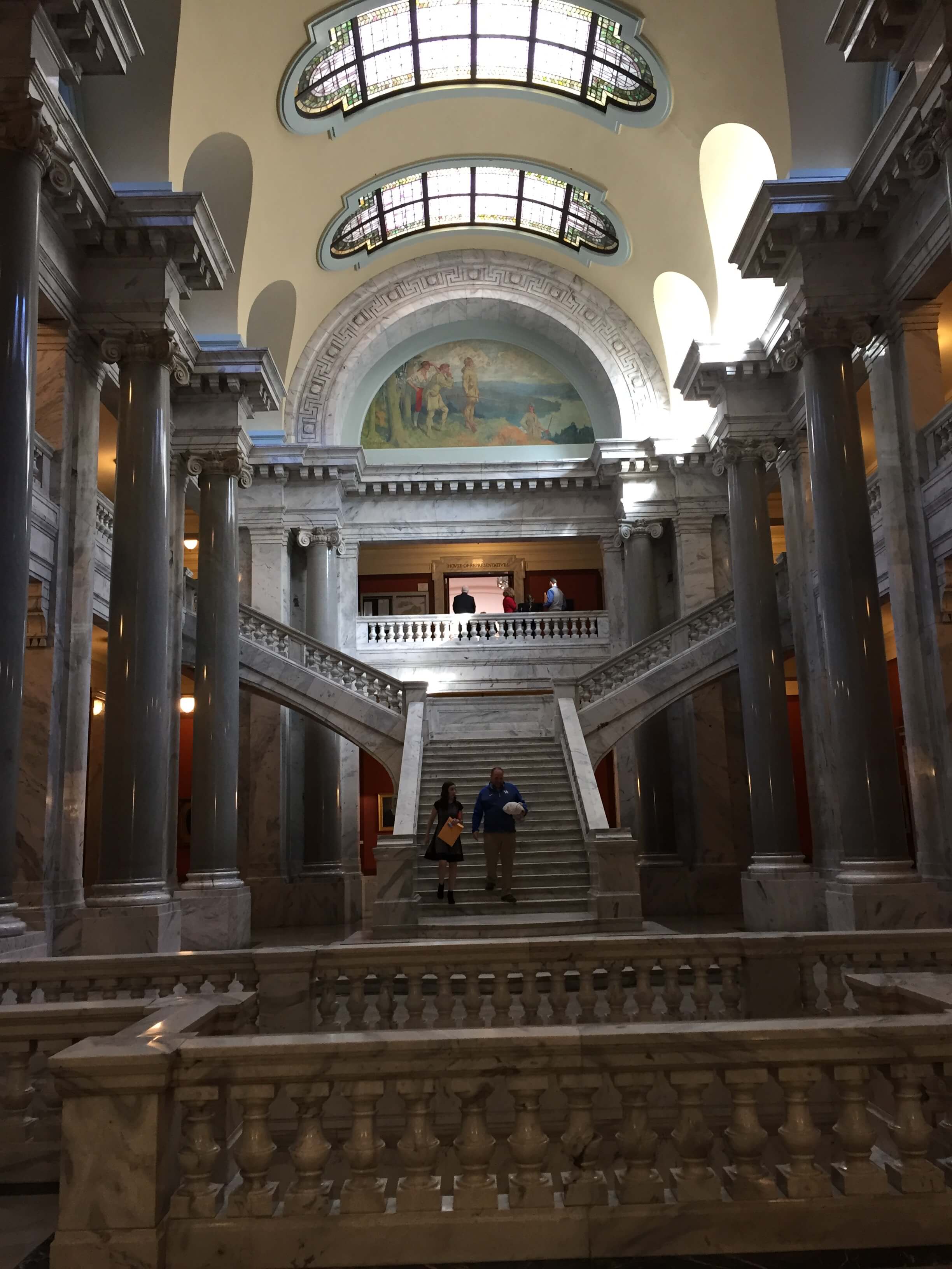 The Kentucky State Capital is located in the town of Frankfort along the Kentucky River. The small town feel of Frankfort makes visiting the area very relaxing. The capitol building that stands today is the fourth building to houses the state legislature. The first two building were used between 1792-1830 until a fire claimed them. The third building was used from 1830-1910. This building is called the ‘old’ capitol building and still stands today. The current building was designed by architect Frank Mills Andrews and was dedicated on June 2, 1910. The final cost of construction for this building was $1.82 million. Today it would cost between $500 million and $1 billion to construct. The facade is constructed of Indiana Bedford Limestone and Vermont Granite and interior is composed of white Georgia marble, gray Tennessee marble and dark green Vermont marble with grand corridors featuring 36 columns of Vermont granite and delicate art glass skylights and murals. The grounds of the state capital are beautiful and lend themselves to a leisurely stroll. To learn more about Kentucky’s capital click on this link. https://en.wikipedia.org/wiki/Kentucky_State_Capitol