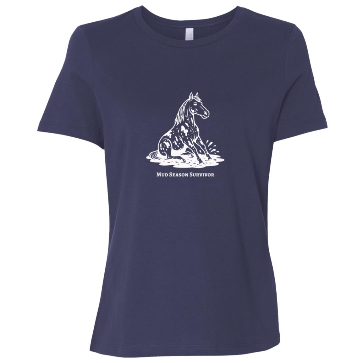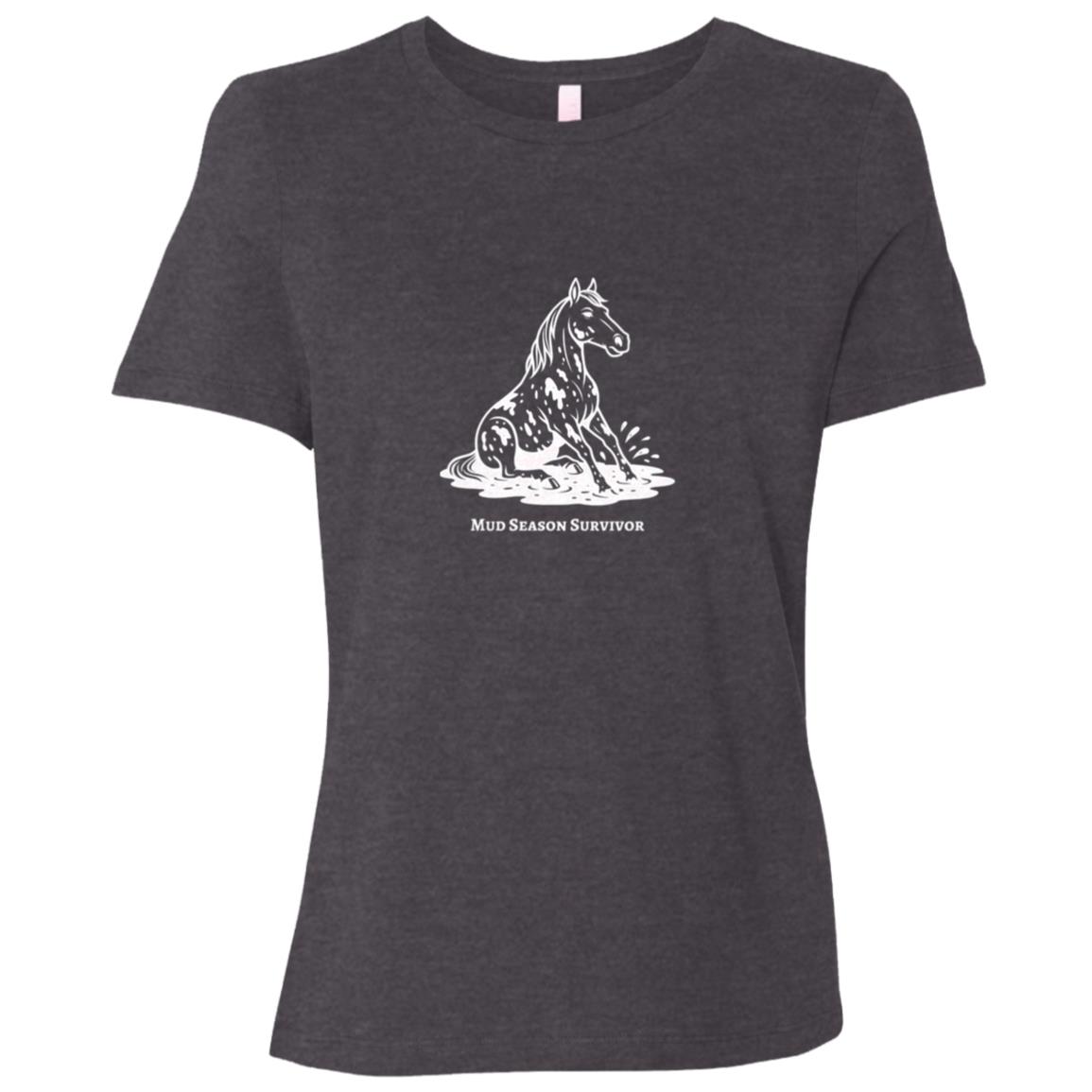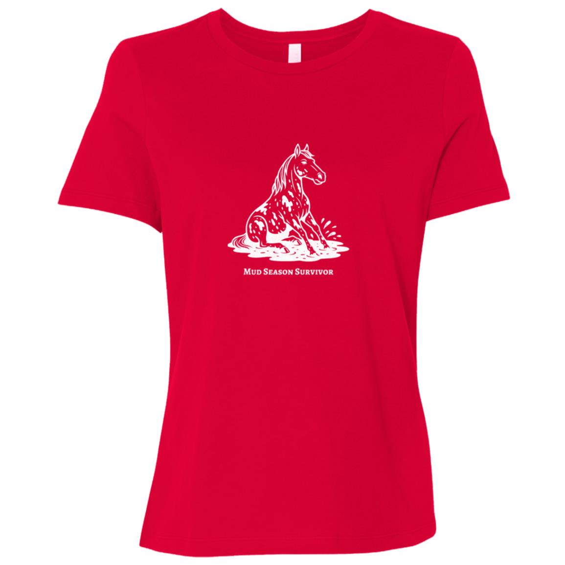 Mud Season Survivor Horse Graphic White B6400 Bella + Canvas Ladies Relaxed Jersey Short-Sleeve T-Shirt