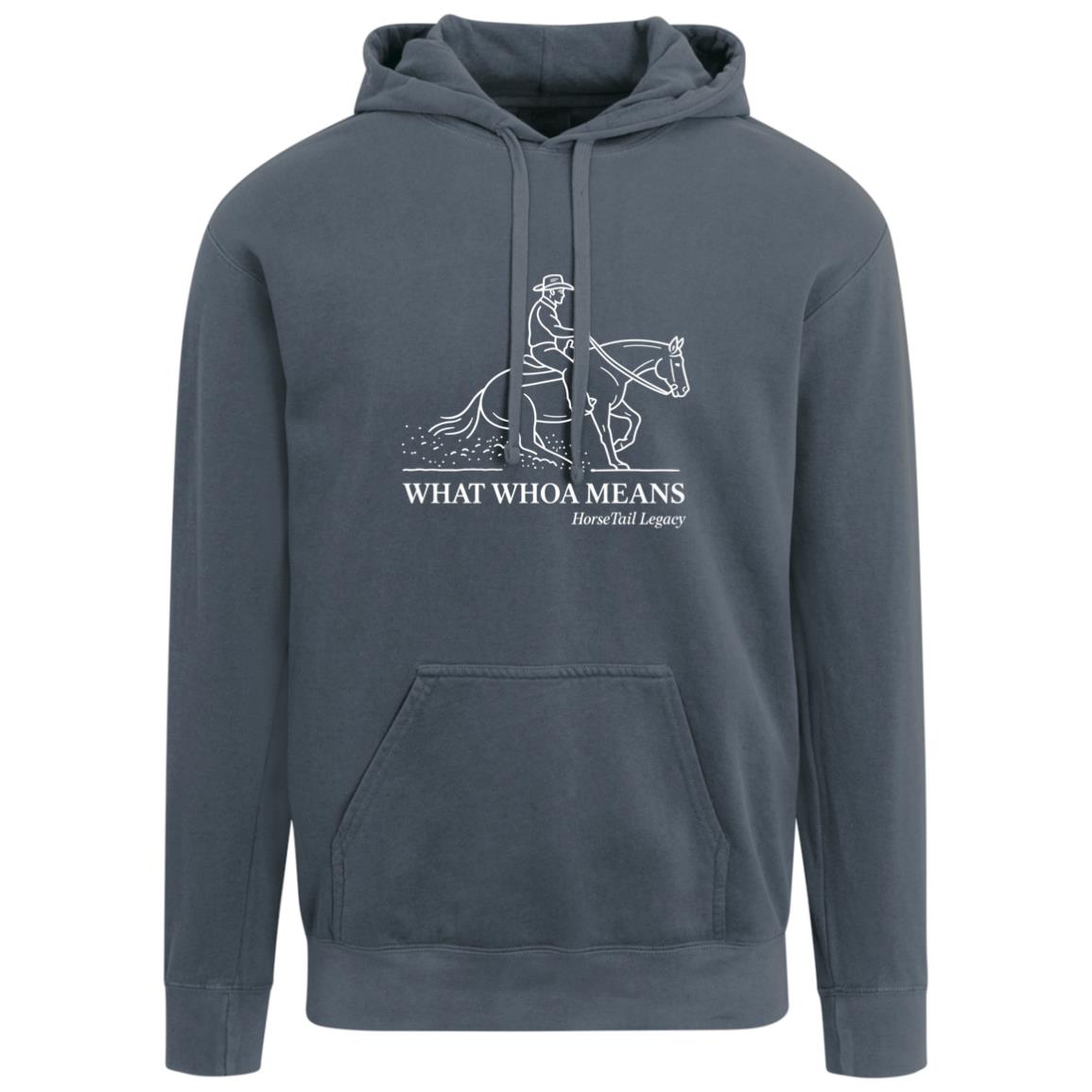 That perfect stop, the moment when horse and rider come together in complete control, is what every reiner works for. The What Whoa Means men’s hoodie from HorseTail Legacy captures that precision and the power behind every “whoa.” With clean line art of a reining rider in motion, it reflects the focus, feel, and grit that define every true horseman.