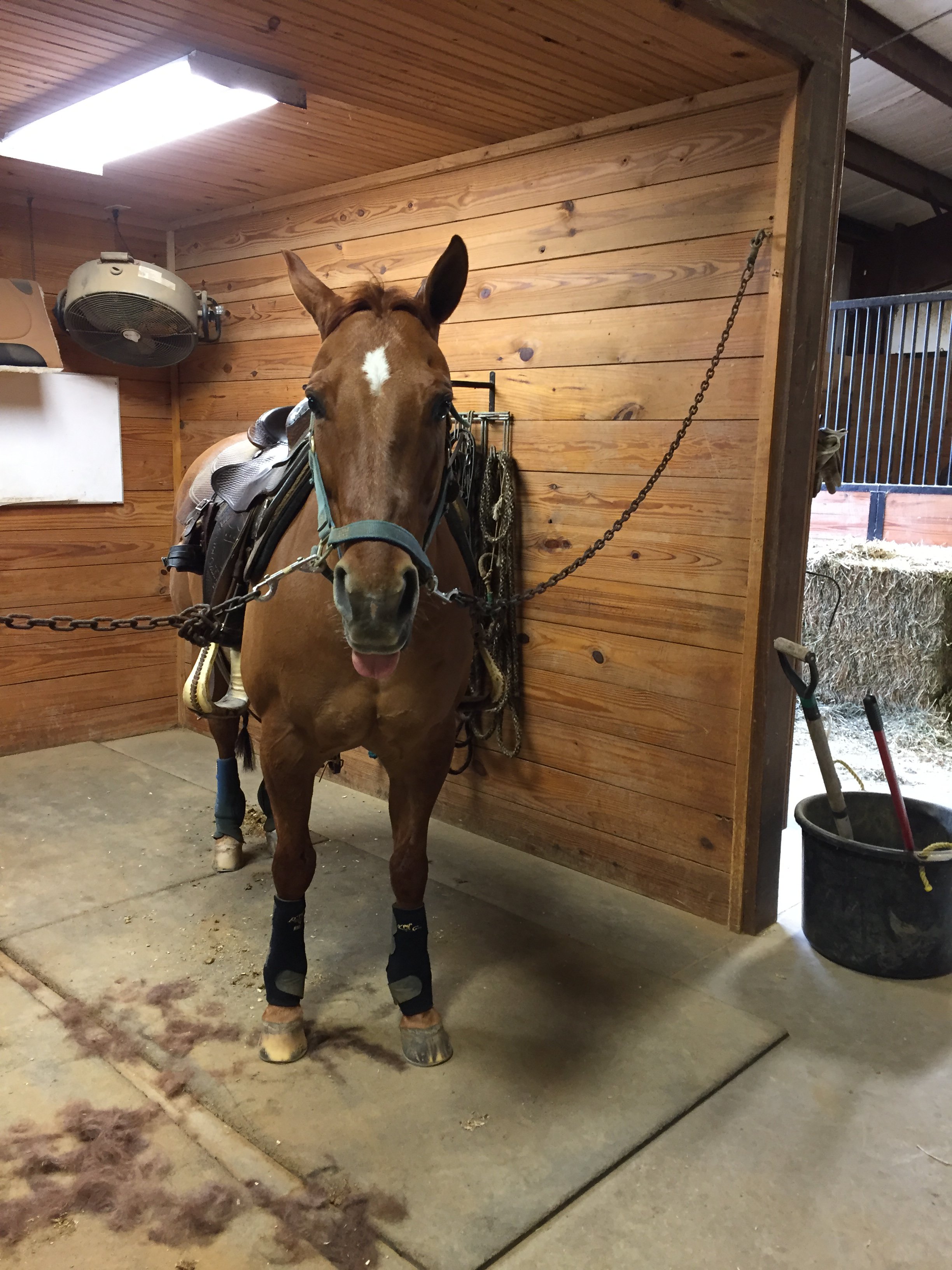 The lead change exercise was a new one for me. We counter cantered around the outside of the arena being sure to stay away from the walls. After multiple times around the arena I would ask for the lead change by laying my outside leg on and releasing my inside leg and kissing for the lead change. This was done on the long straight line of the arena. I have to say I was not good at this exercise. Every time I took my inside leg off my horse thought I wanted him to stop.
